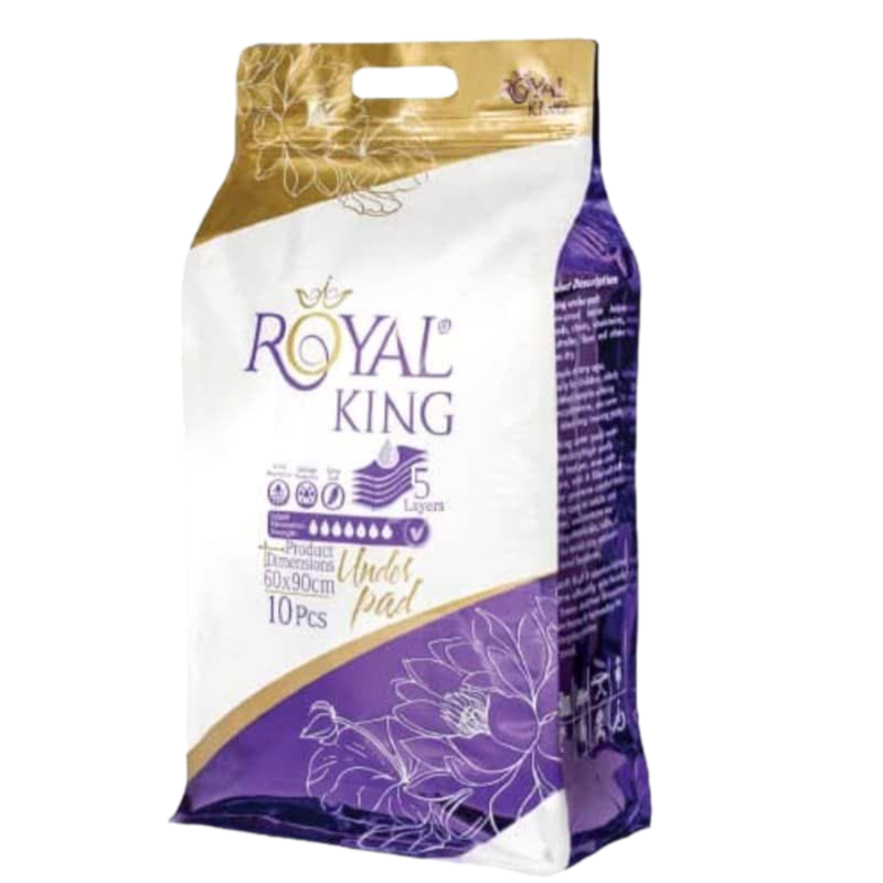 پد زیرانداز بیمار رویال کینگ با جذب فوقالعاده و لایه ضدنشت، محافظت کامل برای بیماران، سالمندان و مراقبتهای خانگی. بسته ۱۰ عددی با کیفیت بالا.